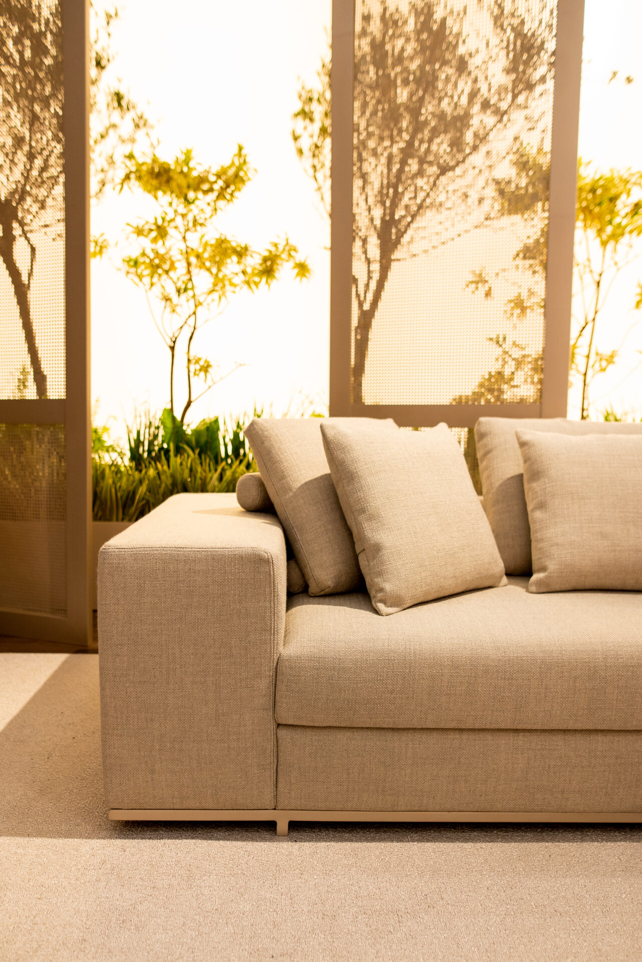 Según la propuesta del sofá, la tela puede ser rectilínea o más informe.