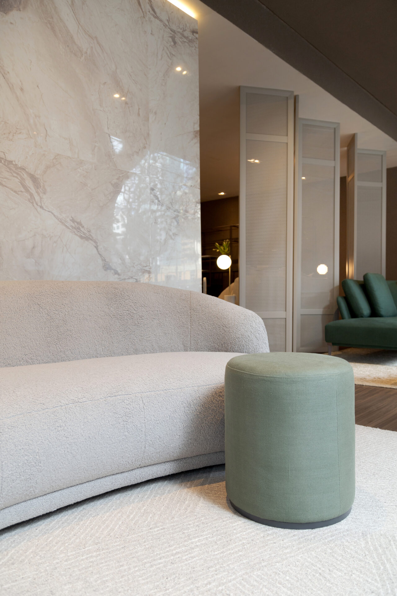 Según la propuesta del sofá, la tela puede ser rectilínea o más informe.