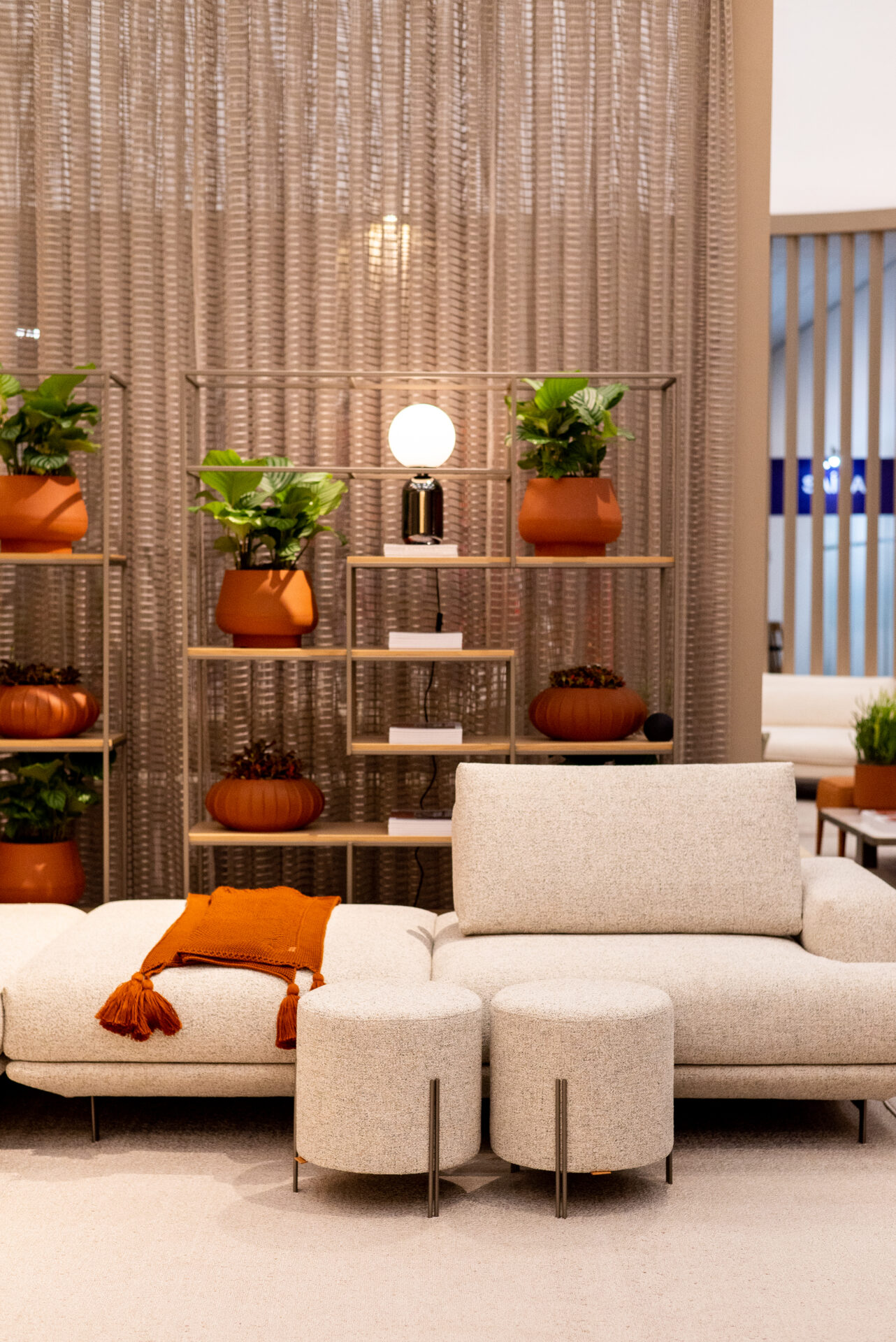Según la propuesta del sofá, la tela puede ser rectilínea o más informe.