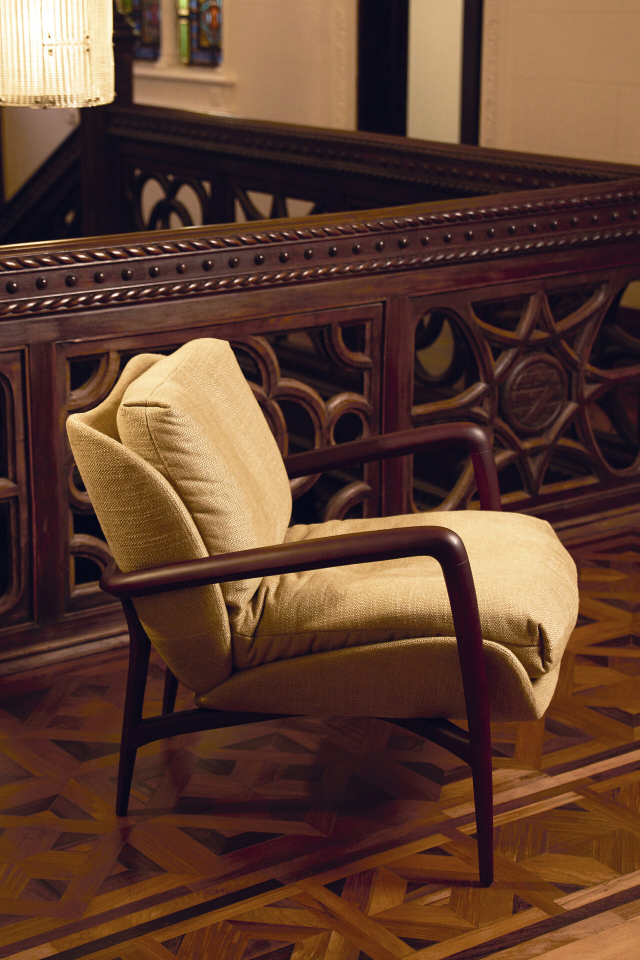 El sillón Édifiante ha sido diseñado para aportar nuevas perspectivas de diseño y confort a los ambientes. Su asiento está acomodado por una carcasa que destaca por el detalle de desnivel en el respaldo y descansa sobre una estructura de madera de dimensiones angulares extremadamente ergonómicas. Personalizable, está disponible en multitud de tejidos y acabados que inspiran la creación de algo nuevo y único cada vez que se especifica el sillón. Édifiante es una pieza llena de entusiasmo, que nos sugiere el deleite de cada momento de nuestra rutina.