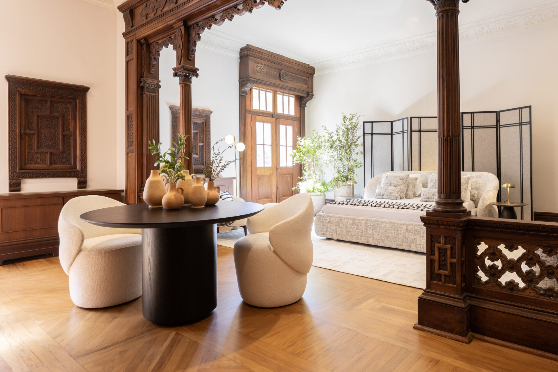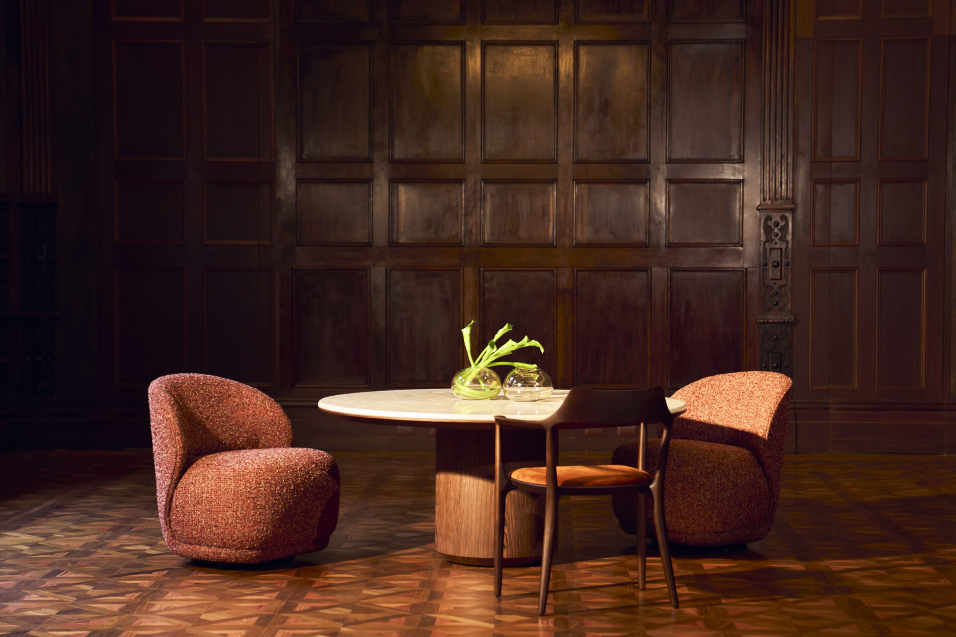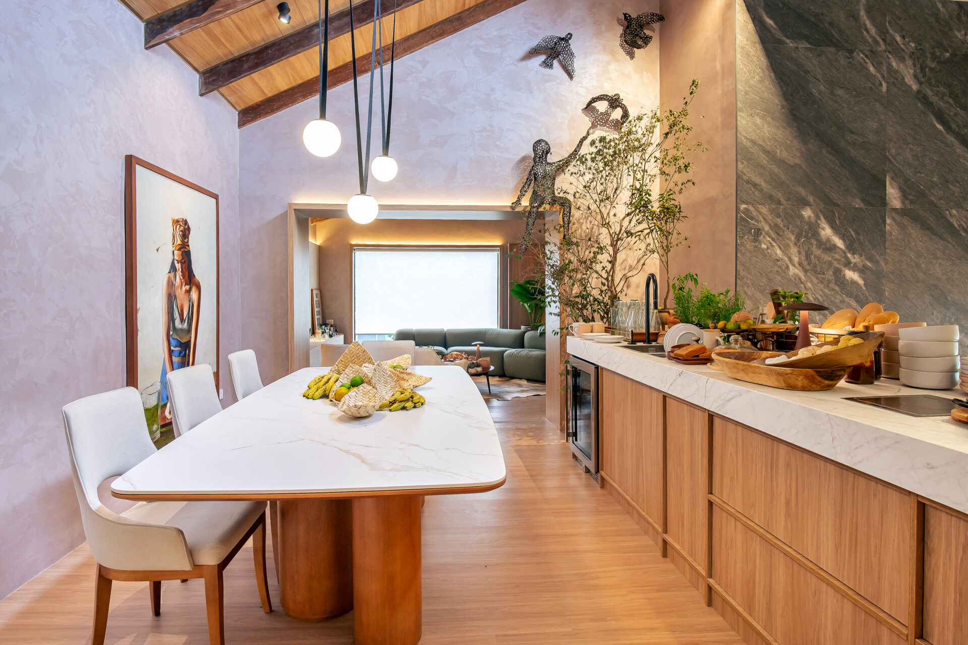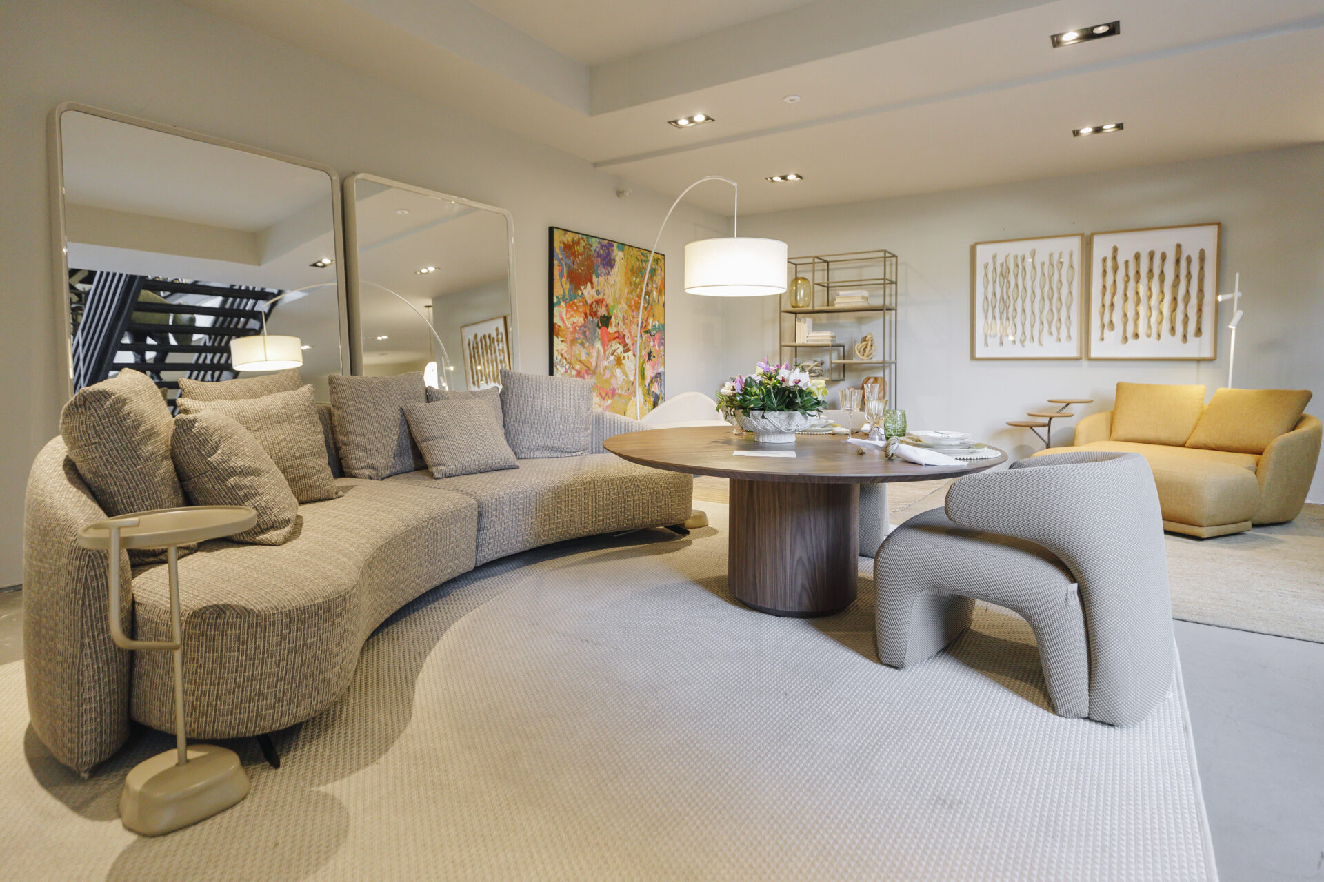 Com versões de tampo retangular ou redondo, a mesa de jantar Ticiano encaixa-se em uma grande variedade de ambientes e está disponível em dimensões que comportam de 4 a 10 lugares. Além dos formatos de tampo, esta linha conta com mesas redondas de altura levemente reduzida, conhecidas como sofá-table, que têm por finalidade a composição junto a mesa de jantar ou áreas de lazer onde ao invés de serem aplicadas cadeiras, utilizam-se poltronas.