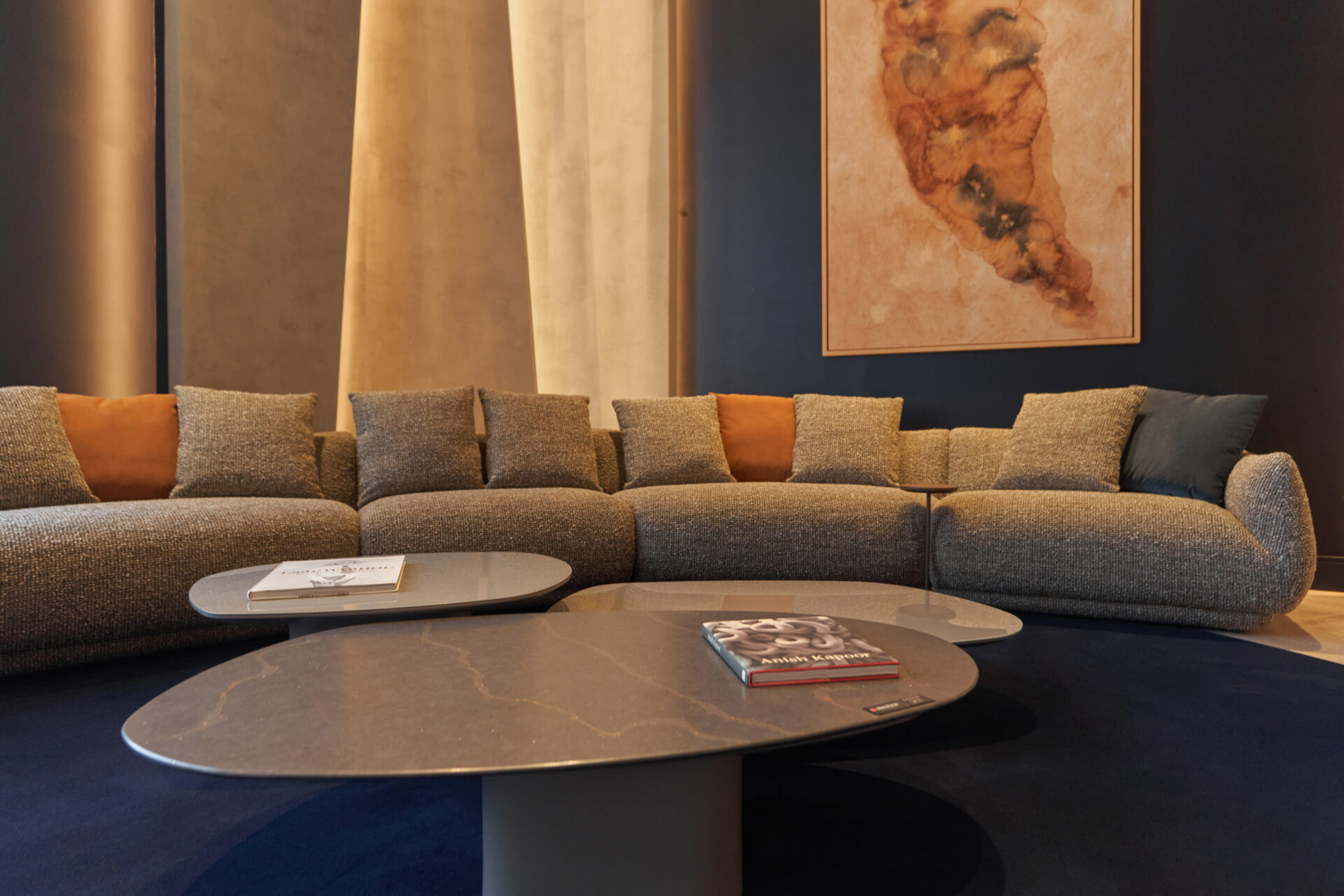 Según la propuesta del sofá, la tela puede ser rectilínea o más informe.