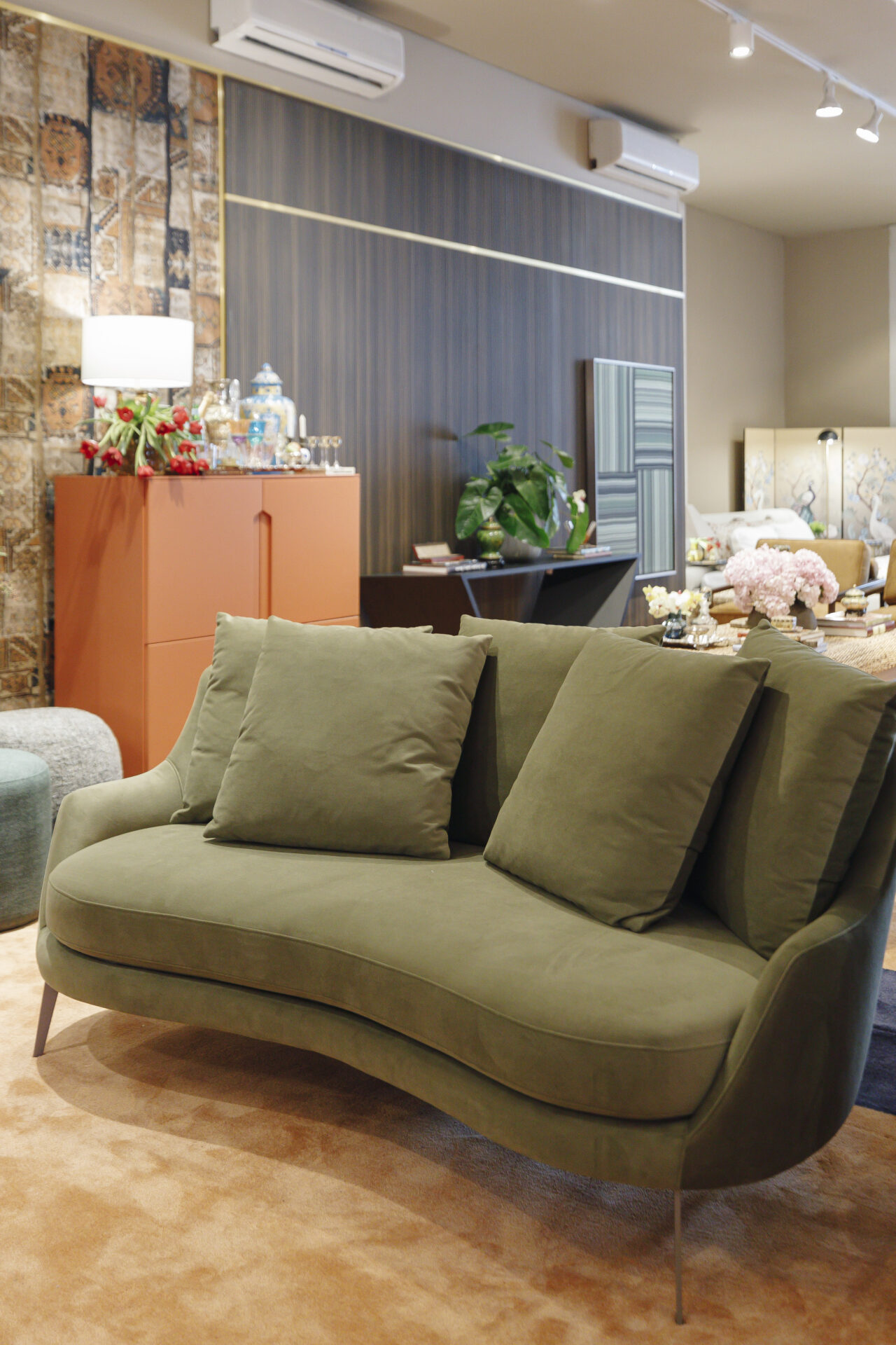 Según la propuesta del sofá, la tela puede ser rectilínea o más informe.